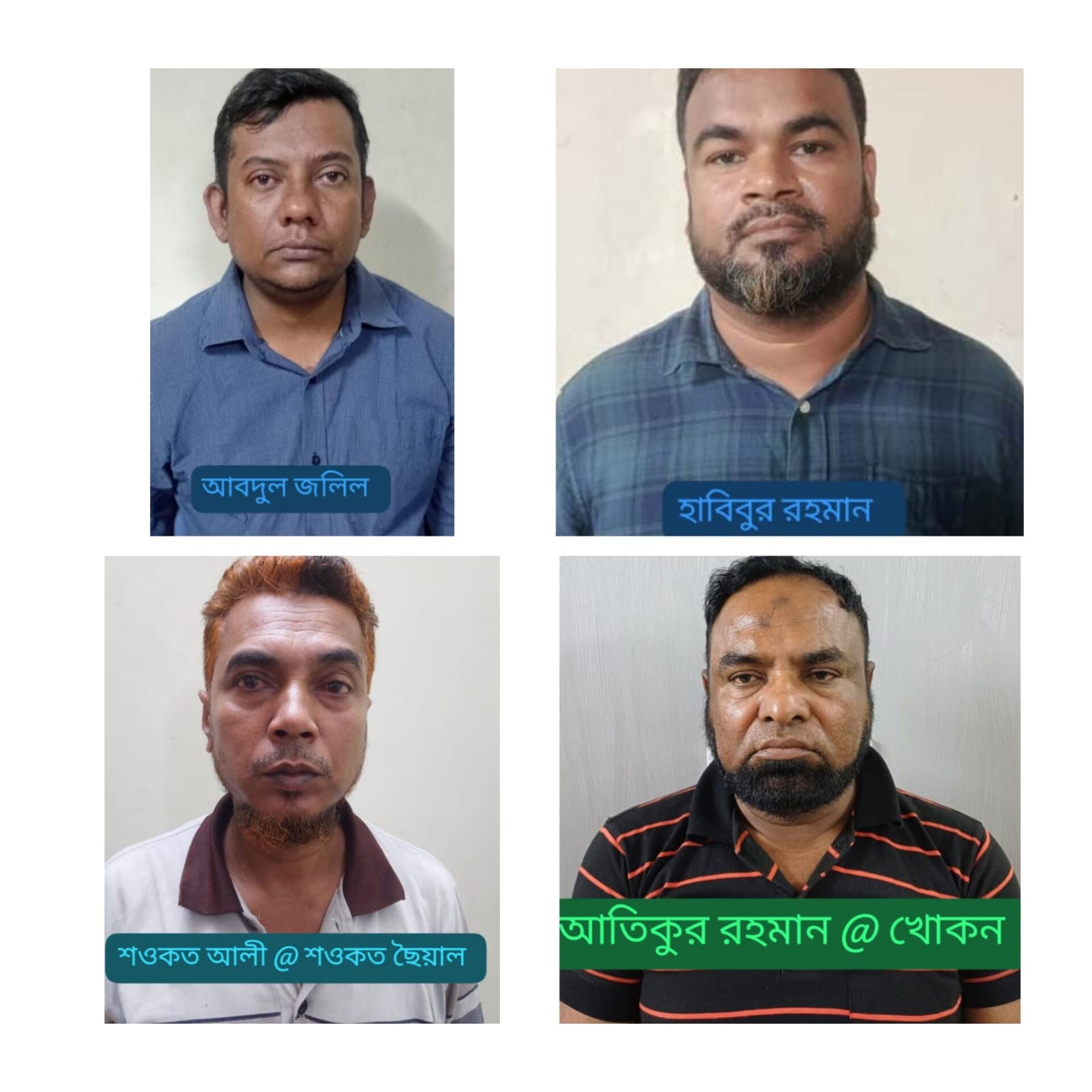 কার্যক্রম নিষিদ্ধ আওয়ামী লীগ ও এর অঙ্গসংগঠনের চার জনকে গ্রেফতার করেছে ঢাকা মহানগর গোয়েন্দা পুলিশ (ডিবি)