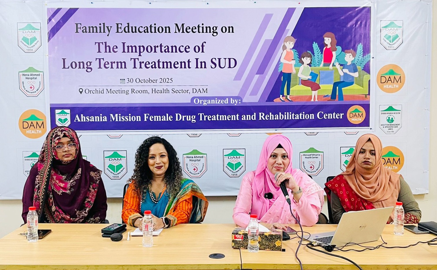 আজ বৃহস্পতিবার (৩০ অক্টোবর) বেলা ১১ টায় রাজধানীর শ্যামলীতে ঢাকা আহ্ছানিয়া মিশন স্বাস্থ্য সেক্টরের সভাকক্ষে আহ্ছানিয়া মিশন নারী মাদকাসক্তি চিকিৎসা ও পুনর্বাসন কেন্দ্র আয়োজিত কেন্দ্রে চিকিৎসারত ক্লায়েন্টদের পরিবারের সদস্যদের নিয়ে পারিবারিক সভায় তিনি এ মন্তব্য করেন।
