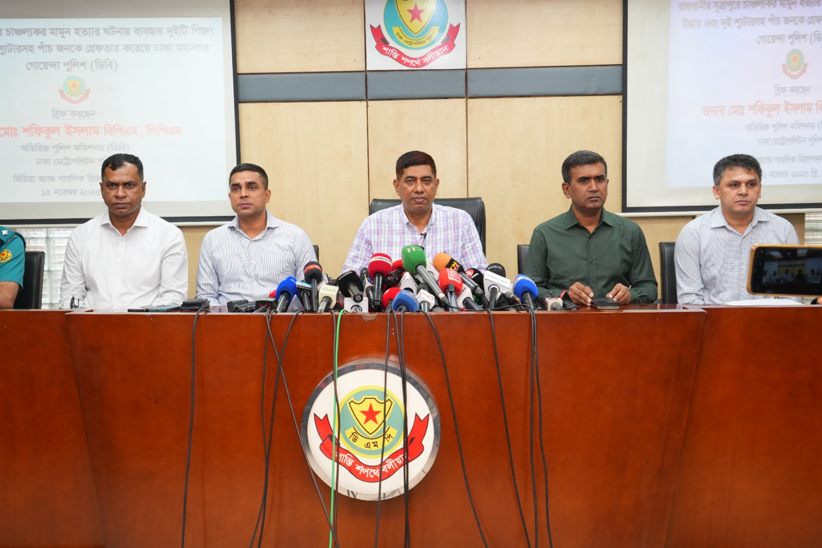রাজধানীর সূত্রাপুরে প্রকাশ্য দিবালোকে তারেক সাইফ মামুন (৫৫) নামক এক ব্যক্তিকে গুলি করে হত্যার চাঞ্চল্যকর ঘটনায় জড়িত দুই শ্যুটারসহ পাঁচ জনকে গ্রেফতার করেছে ঢাকা মহানগর গোয়েন্দা পুলিশ (ডিবি)। এ সময় তাদের হেফাজত হতে এই হত্যাকাণ্ডে ব্যবহৃত দুইটি বিদেশি পিস্তল, পিস্তলের দুইটি ম্যাগাজিন, ছয় রাউন্ড গুলি, একটি মোটরসাইকেল, নগদ ১,৫৩,৬৪০ (এক লক্ষ তেপ্পান্ন হাজার ছয়শত চল্লিশ) টাকা উদ্ধার করা হয়।