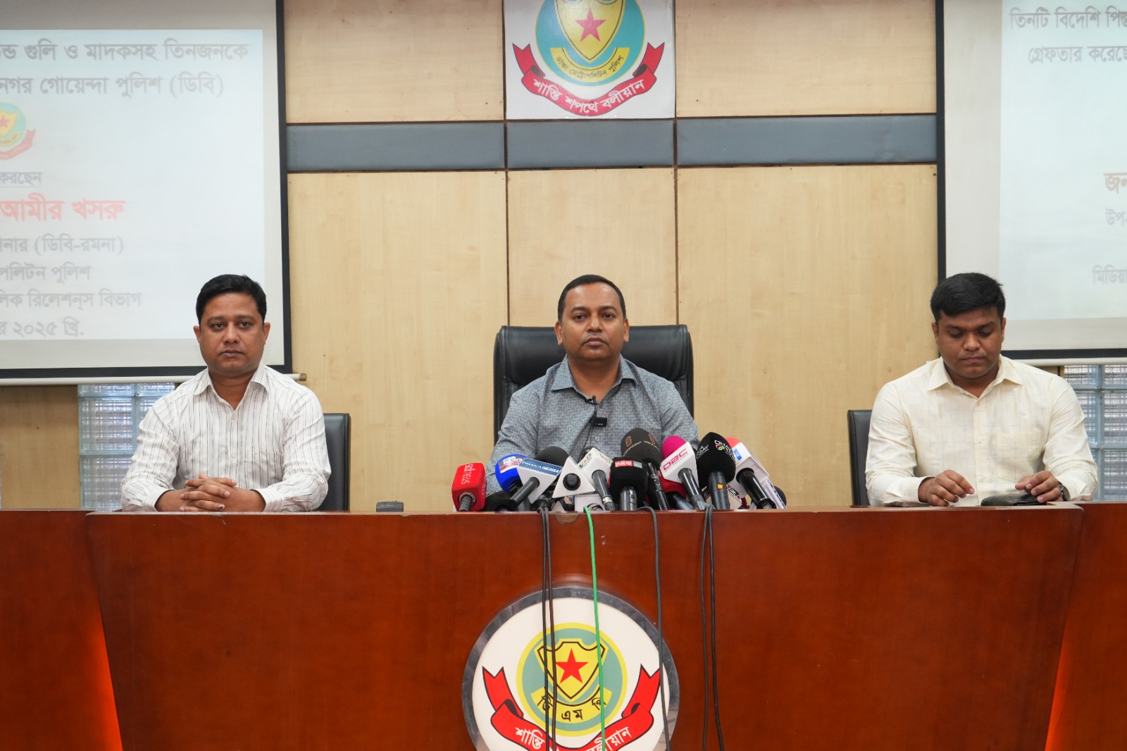 গোয়েন্দা রমনা বিভাগ সূত্রে জানা যায়, সোমবার (১৭ নভেম্বর) গোপন তথ্যের ভিত্তিতে ঢাকা মহানগর গোয়েন্দা রমনা বিভাগের অবৈধ অস্ত্র উদ্ধার ও মাদক নিয়ন্ত্রণ টিমের একটি চৌকস দল কদমতলী থানাধীন নতুন শ্যামপুর রেললাইনের পশ্চিম পাশে ভাঙারি বাড়ির দক্ষিণের একটি টিনশেড বসতবাড়িতে অভিযান পরিচালনা করে তাদের গ্রেফতার করে। গ্রেফতারকালে তাদের হেফাজত হতে তিনটি বিদেশি পিস্তল, তিনটি ম্যাগাজিন, ষাট রাউন্ড গুলি, ৮০০ পিস ইয়াবা ও সাড়ে আট কেজি গাঁজা উদ্ধার করা হয়।
