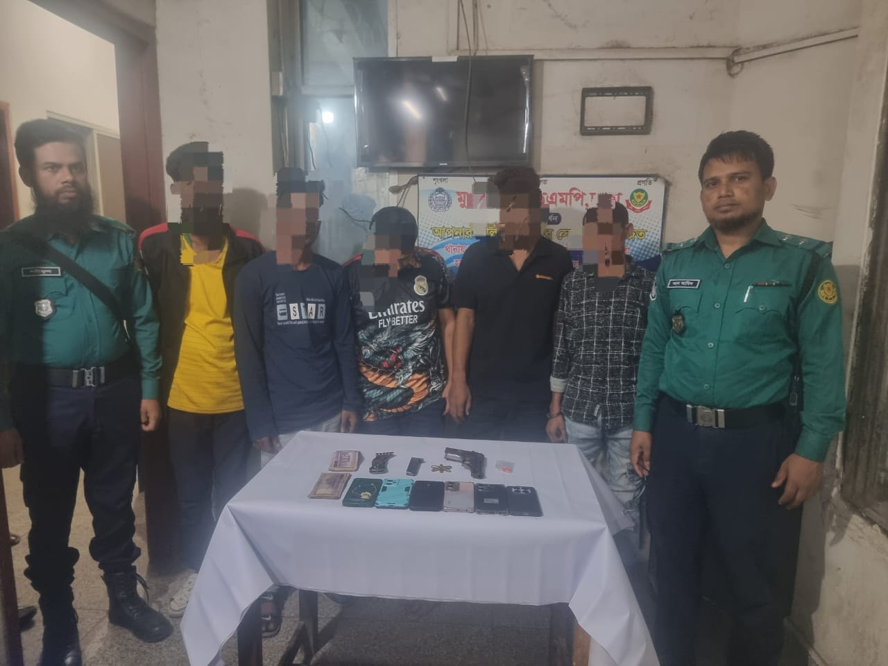গ্রেফতারকৃতরা হলো- ১। মোঃ জসিম (২৩) ২। মোঃ বাবু ইসলাম (২৬) ৩। মোঃ জুম্মান আলী (২২) ৪। কাজী এহসান আহাম্মদ (৩০) ও ৫। মোঃ আল আমিন (২৪)।