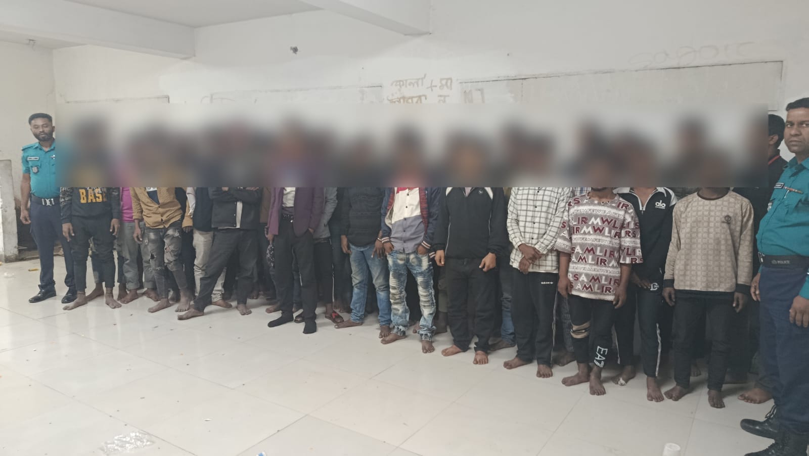 গ্রেফতারকৃতরা হলো- ১। মাহবুবুল আলম (৪৫) ২। শাহজাদা (৩০) ৩। আরিফ হাসান (২৭) ৪। সজল (২৫) ৫। দ্বীন ইসলাম (৩১) ৬। রেজোন আলী (৩৫) ৭। শাহ আলম (২৬) ৮। সোহেল (২২) ৯। রিয়াদ (২২) ১০। সামীর (২৬) ১১। রনি সরকার (৩৫) ১২। ইরফান হোসেন সুমন (৩২) ১৩। হাসান (২৬) ১৪। সাকলাইন আহমেদ (৩৪) ১৫। ইব্রাহিম (২৫) ১৬। হুসাইন (২৫) ১৭। শফিক উদ্দিন (৪০) ১৮। জসিম (২৫) ১৯। আমিন (২৭) ২০। চান মিয়া (২৫) ২১। রমিজ (৩৫) ২২। বাবু (২৪) ২৩। লিমন (২০) ২৪। খাইরুল (২৫) ২৫। নওশাদ (৩৬) ২৬। রানা (২৮) ২৭। হাসিনা বেগম (৩৫) ২৮। সুজন (২৫) ২৯। কামাল (৩৯) ৩০। সাইফুল মিয়া (৩৫) ৩১। রুবেল (২৭) ৩২। জনি (৩৩) ৩৩। রাব্বি (২৩) ৩৪। তানভীর আহমেদ তুষার (২২) ৩৫। শুভ (২০) ৩৬। আল আমিন (১৯) ৩৭। মান্নান (৩০) ৩৮। নয়ন (২০) ৩৯। রনি (২৮) ৪০। সাইফুল ইসলাম (২০) ৪১। ইকবাল হোসেন (২২) ৪২। মনির হোসেন (২৪) ৪৩। জসিম (২৬) ৪৪। মেহেদী (২৪) ৪৫। রাব্বি (২২) ৪৬। রবিউল (২২) ৪৭। শেখ আসাদুজ্জামান (২৫) ৪৮। মমিন (২৮) ৪৯। আশিকুল ইসলাম আশিক (২৪) ৫০। মোহাম্মদ আলী (৩২) ৫১। মনির হোসেন (৩০) ৫২। প্রকাশ (১৯) ও ৫৩। আশিক (১৯)।