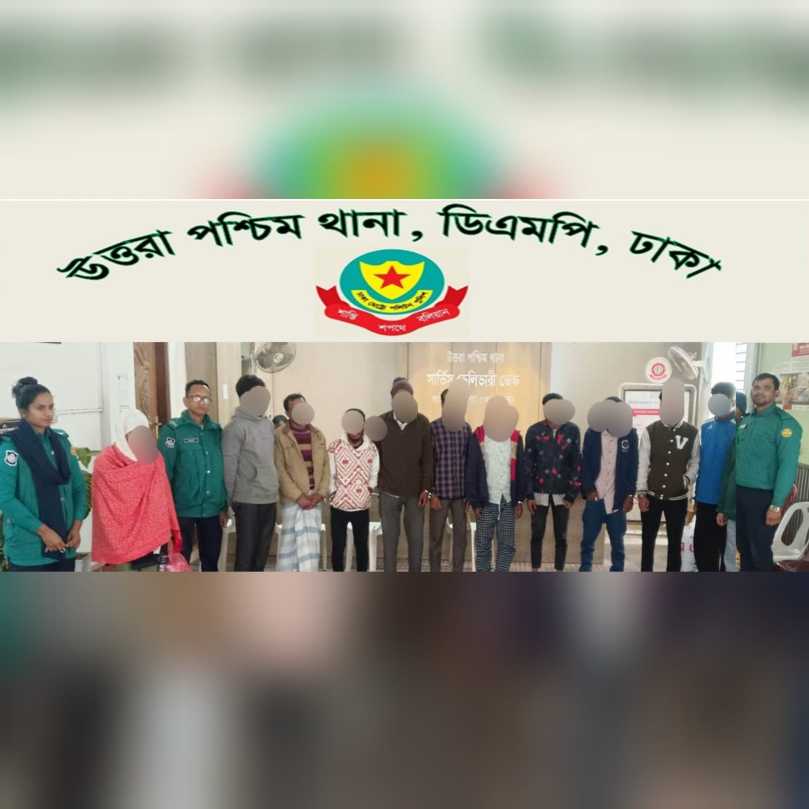 রাজধানীর উত্তরা পশ্চিম থানা এলাকায় দিনব্যাপী বিশেষ অভিযান পরিচালনা করে বিভিন্ন অপরাধে জড়িত মোট ১১ জনকে গ্রেফতার করেছে ঢাকা মেট্রোপলিটন পুলিশের উত্তরা পশ্চিম থানা পুলিশ।