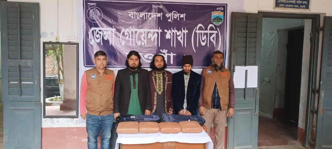 নওগাঁ জেলার পুলিশ সুপার মোহাম্মদ তারিকুল ইসলামের নির্দেশে মাদকের বিরুদ্ধে জিরো টলারেন্স নীতি বাস্তবায়নে বড় ধরনের সাফল্য পেয়েছে জেলা গোয়েন্দা শাখা (ডিবি)। মঙ্গলবার (০৬ জানুয়ারি) ভোররাতে এক বিশেষ অভিযানে ৮ কেজি গাঁজাসহ ৩ মাদক ব্যবসায়ীকে গ্রেফতার করা হয়েছে। পুলিশ সূত্রে জানা গেছে, জেলা গোয়েন্দা শাখার একটি চৌকস দল গোপন সংবাদের ভিত্তিতে জানতে পারে যে, একদল মাদক ব্যবসায়ী বিপুল পরিমাণ গাঁজাসহ পঞ্চনগর এক্সপ্রেস ট্রেন থেকে নেমে সান্তাহার স্টেশন হয়ে নওগাঁ সদর থানার নতুন শাহাপুর ঢাকা মোড় এলাকায় অবস্থান করছে। পুলিশের অভিযানকারী দল ভোর ৫টা ৩০মিনিটে উক্ত স্থানে অভিযান চালায়।