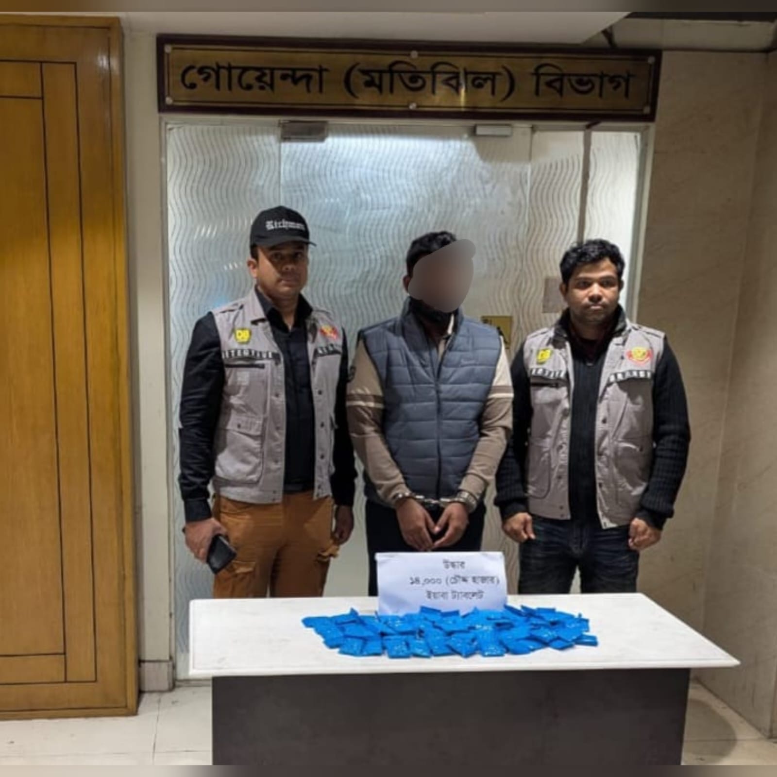 ডিবি-মতিঝিল বিভাগ সূত্রে জানা যায়, গোপন তথ্যের ভিত্তিতে ডিবি-মতিঝিল বিভাগের একটি চৌকস টিম যাত্রাবাড়ী থানাধীন কাজলা ফুট ওভার ব্রিজ এলাকায় অভিযান পরিচালনা করে ১৪ হাজার পিস ইয়াবাসহ ওয়াজ কুরুনী ওরফে সাকিবকে গ্রেফতার করে। গ্রেফতারকৃতের বিরুদ্ধে যাত্রাবাড়ী থানায় মাদকদ্রব্য নিয়ন্ত্রণ আইনে একটি মামলা রুজু করা হয়েছে।
