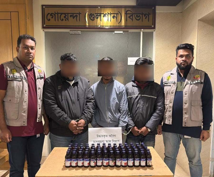 ডিবি-গুলশান বিভাগ সূত্রে জানা যায়, গোপন তথ্যের ভিত্তিতে ডিবি-গুলশান বিভাগের একটি চৌকস টিম হাতিরঝিল থানাধীন মগবাজার রেল ক্রসিং সংলগ্ন শহীদ তাজউদ্দীন আহমেদ সরণি এলাকায় অভিযান পরিচালনা করে তাদেরকে গ্রেফতার করে। এ সময় তার হেফাজত হতে ৭০ বোতল Eskuf সিরাপ ও মাদককাজে ব্যবহৃত ০২ টি মোটরসাইকেল জব্দ করা হয়। গ্রেফতারকৃতের বিরুদ্ধে হাতিরঝিল থানায় মাদকদ্রব্য নিয়ন্ত্রণ আইনে একটি মামলা রুজু করা হয়েছে।