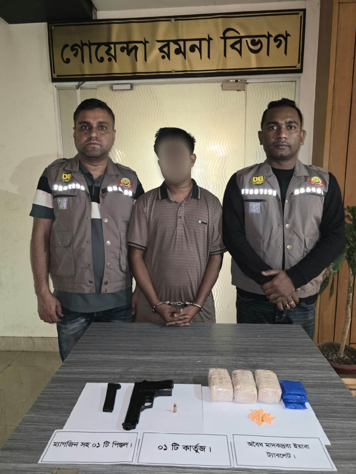 গ্রেফতারকৃতের বিরুদ্ধে আইনানুগ ব্যবস্থা গ্রহণ প্রক্রিয়াধীন।