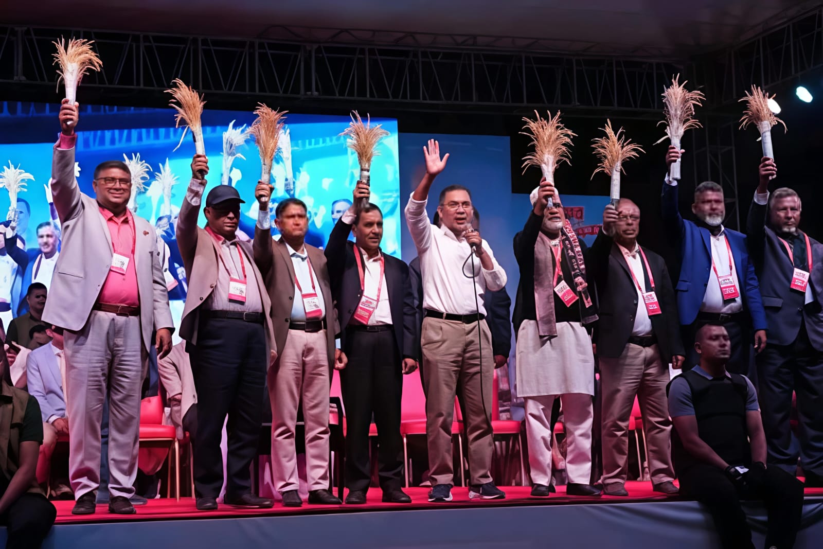 জনসভায় তারেক রহমান নওগাঁ ও জয়পুরহাট জেলার ধানের শীষ প্রতীকের আটটি আসনের প্রার্থীদের উপস্থিত জনতার সঙ্গে পরিচয় করিয়ে দেন।