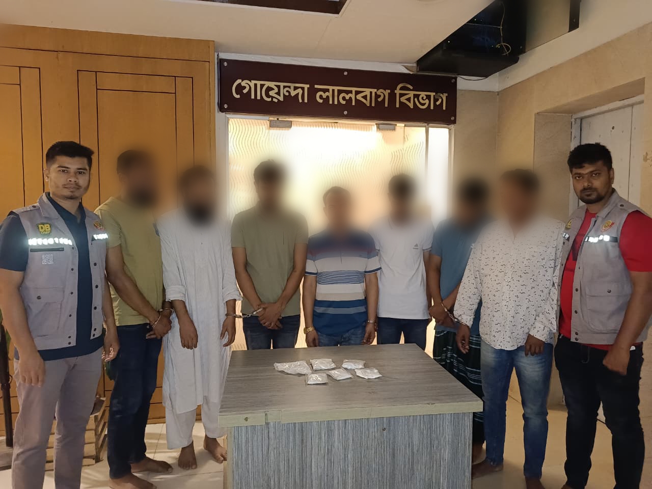 ডিবি লালবাগ বিভাগ সূত্রে জানা যায়, গোপন সংবাদের ভিত্তিতে রবিবার (৫ এপ্রিল) বিকাল আনুমানিক ০৫:১০ ঘটিকায় গুলশান থানাথীন গুলশান-২ এ ডিএনসিসি মার্কেটের সামনে অভিযান পরিচালনা করে ১০০ গ্রাম কোকেনসহ মিলন, মেহেদী, তরিকুল ও ফাহিমকে গ্রেফতার করে ডিবি-লালবাগ জোনাল টিম। গ্রেফতারকৃতদের দেওয়া তথ্য মতে একই তারিখ রাত আনুমানিক ১২:০০ ঘটিকায় মোহাম্মদপুর থানাধীন সলিমুল্লাহ রোড অভিযান পরিচালনা করে ৩৫০ গ্রাম কোকেনসহ মোঃ রাকিব, শহিদুল ও আওয়ালকে গ্রেফতার করা হয়। গ্রেফতারকৃতদের বিরুদ্ধে গুলশান থানায় মাদকদ্রব্য নিয়ন্ত্রণ আইনে মামলা রুজু করা হয়েছে।