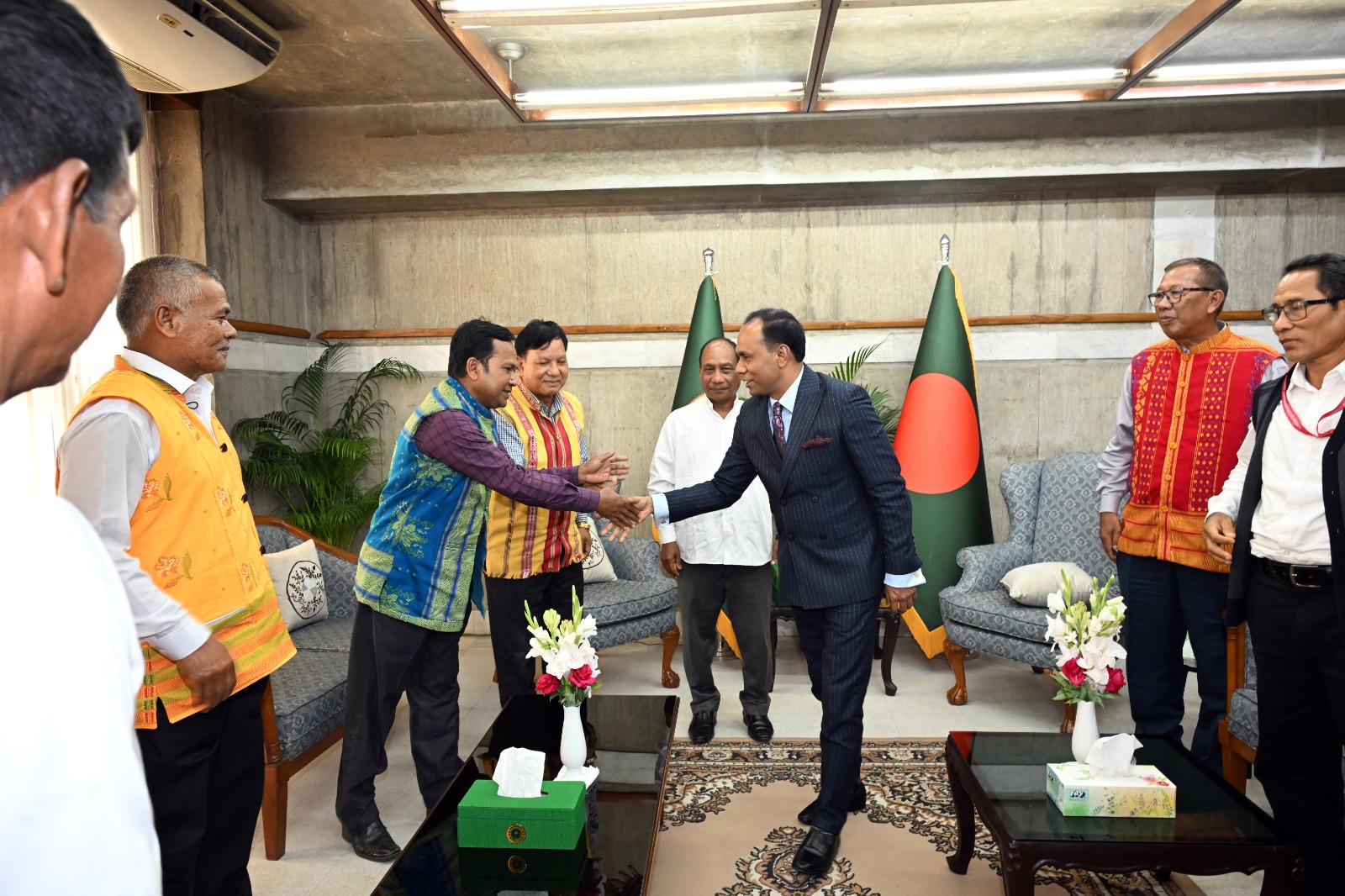 ঢাকা, ১৬ এপ্রিল, ২০২৬ বাংলাদেশ জাতীয় সংসদের ডেপুটি স্পীকার ব্যারিস্টার কায়সার কামাল এমপি'র সঙ্গে তাঁর নির্বাচনী এলাকার খ্রিস্টান কমিউনিটির ব্যক্তিবর্গ সংসদ ভবনস্থ কার্যালয়ে সৌজন্য সাক্ষাৎ করেন। এ সময় ডেপুটি স্পীকার সবার খোঁজ খবর নেন এবং এলাকার উন্নয়নে শান্তি শৃঙ্খলা বজায় রাখার জন্য সবার সহযোগিতা কামনা করেন।