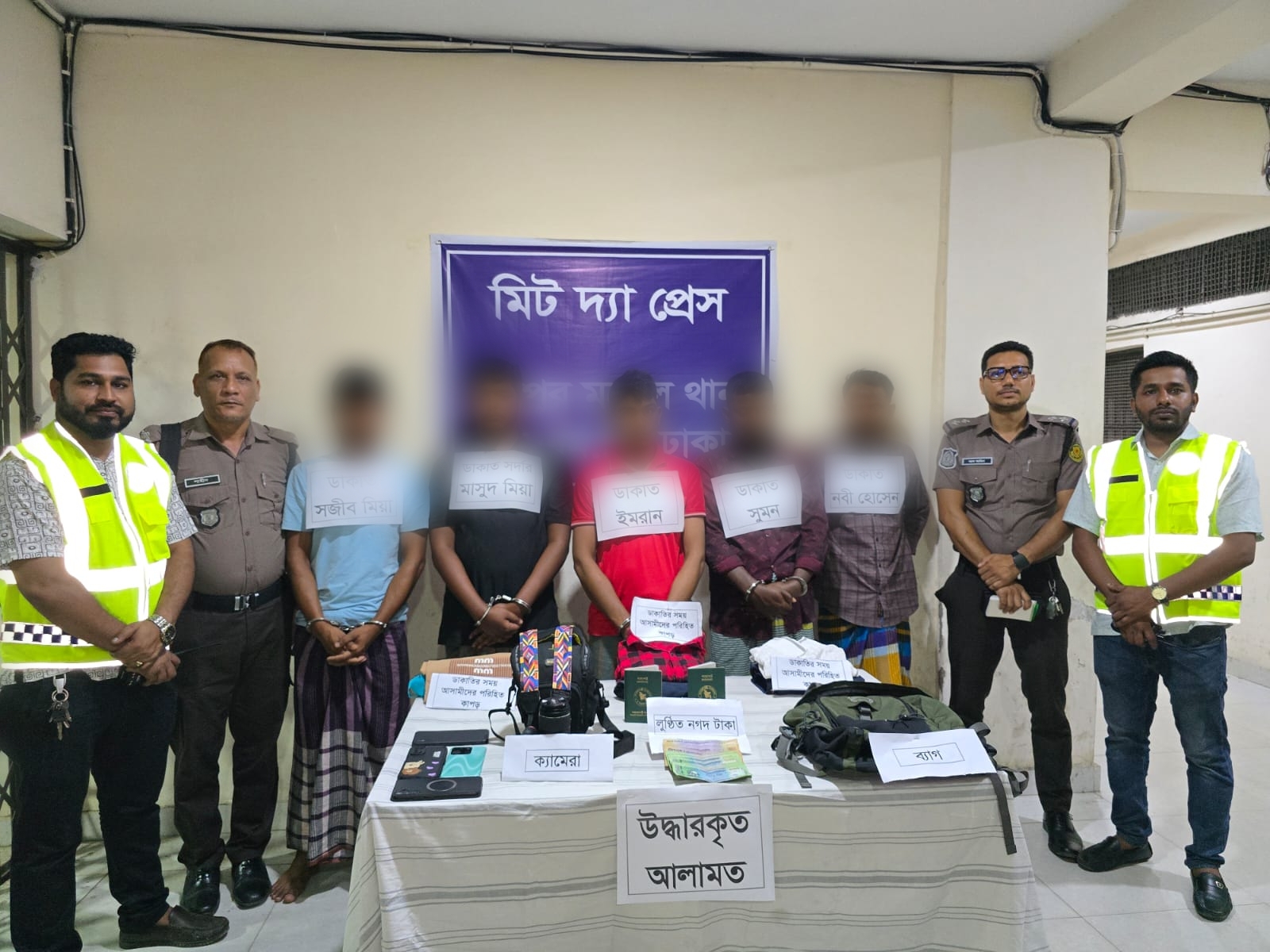 গ্রেফতারকৃতরা হলো- ১। মোঃ মাসুদ মিয়া (৩১) ২। মোঃ ইমরান হাওলাদার (২৯) ৩। মোঃ সুমন (৩৯) ৪। আনিছুর রহমান ওরফে নবী হোসেন (৪৫) ও ৫। সজীব (৩২) ।