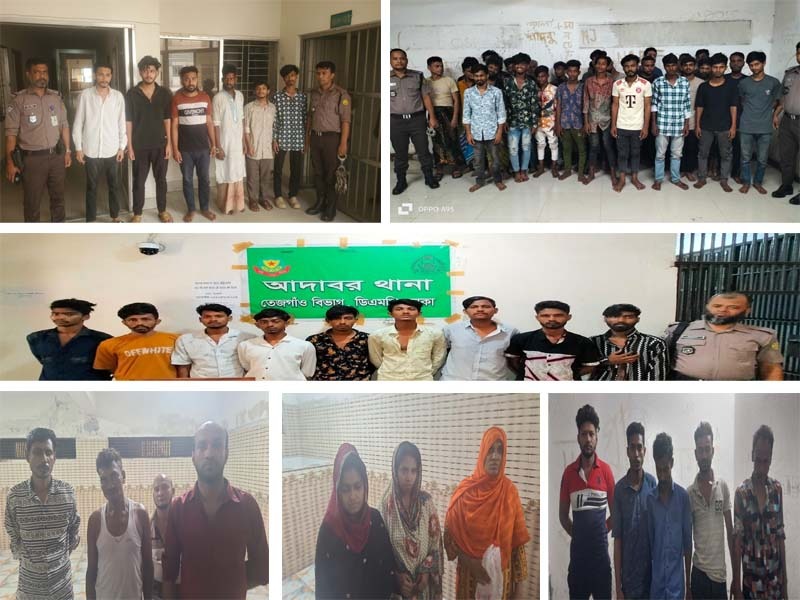 গ্রেফতারকৃতরা হলো-১. মোঃ লিটন (৫৫) ২. মোঃ জিয়াউর রহমান (৪২) ৩. মোছাঃ রুবী আক্তার (৩৫) ৪. মোসাঃ শাকিলা (৩৩) ৫. মোঃ সোহেল বেপারী ওরফে সোহেল (৩৩) ৬. সিমা আক্তার (২৮) ৭. মোঃ রোমান (৩২) ৮. বিল্লাল হোসেন উজ্জল (২৪) ৯. মোঃ হৃদয় হোসেন (২৩) ১০. মোঃ হাসু হাসান (১৯) ১১. গোলাম রাব্বি (১৮) ১২. মোঃ সিফাত (২৪) ১৩. মোঃ রাজিউল ইসলাম রাজ (২২) ১৪. মোঃ সুমন মামুন (৩৩) ১৫. শুভ শুকুর (১৯) ১৬. রাঝি (১৯) ১৭. মোঃ শান্ত (২৪) ১৮. মোঃ জয় (২৭) ১৯. মোঃ শরিফ (২০) ২০. মোঃ রাইদুল হাসান তানভীর (২৪) ২১. মোঃ রবিন গাজী (১৯) ২২. মোঃ বখশি মৃধা (৬০) ২৩. মোঃ মনির হোসেন (১৮) ২৪. মোঃ মুরাদ ২৫. মোঃ ফারহান আহম্মেদ ২৫. মোঃ শামীম ২৭. মোঃ মামুন (৩২) ২৮. মোঃ রাসেল (২৩) ২৯. মোঃ হৃদয় মিয়া (২২) ৩০. মোঃ শাহিদ (৩০) ৩১. আঃ রহিম (৫০) ৩২. শেখ তৌহিদ হোসেন তানিম (৩৫) ৩৩. মোঃ সুমন (৩৫) ৩৪. পারভেজ শেখ (২৫) ৩৫. মোঃ তাজুল ইসলাম ওরফে শুভ (২৪) ৩৬. মোঃ ফাহিম (২২) ৩৭. নূর মোহাম্মদ (৩২) ৩৮. মোঃ রকিবুল ইসলাম জয় (২২) ৩৯. আরিফ (২০) ৪০. মোঃ রুবেল (২৭) ৪১. মোঃ আশাদুল (২৬) ৪২. মোঃ রাব্বি (৩০) ৪৩. মোঃ রবিউল ইসলাম (২২) ৪৪. মোঃ তরুন (২৭) ৪৫. মোঃ নাসির (২২) ৪৬. মোঃ ফয়সাল (২৪) ৪৭. মোঃ রাকিবুল ইসলাম (২২) ৪৮. আল আমিন (১৯) ৪৯. মোঃ ইমন (২১) ৫০. মোঃ শাহিন (২৫) ৫১. মোঃ সুমন মিয়া (২৬) ৫২. মোঃ সেলিম ৫৩. মোঃ বাপ্পী (২২) ৫৪. মোঃ মামুনুর রশিদ (৩০) ৫৫. মিজু আহমেদ (৩৫) ৫৬. মোঃ সাদ্দাম মীর (৩২) ৫৭. মোঃ ইমরান (১৮) ৫৮. মোঃ শামীম (২৮) ৫৯. মোঃ আনছার মিয়া (৬০) ৬০. মোঃ রুস্তুম আলী (৪৫) ৬১. মোঃ গোলাম রসুল মামুন (৪৫) ৬২. মোঃ ওমর আলী (২৭) ৬৩. মোঃ মেহেদী হাসান (২০) ৬৪. মোনারুল ইসলাম (২৫) ৬৫। মোঃ ইব্রাহিম খলিল (৩১) ও আইনের সাথে সংঘাতে জড়িত শিশু একজন।