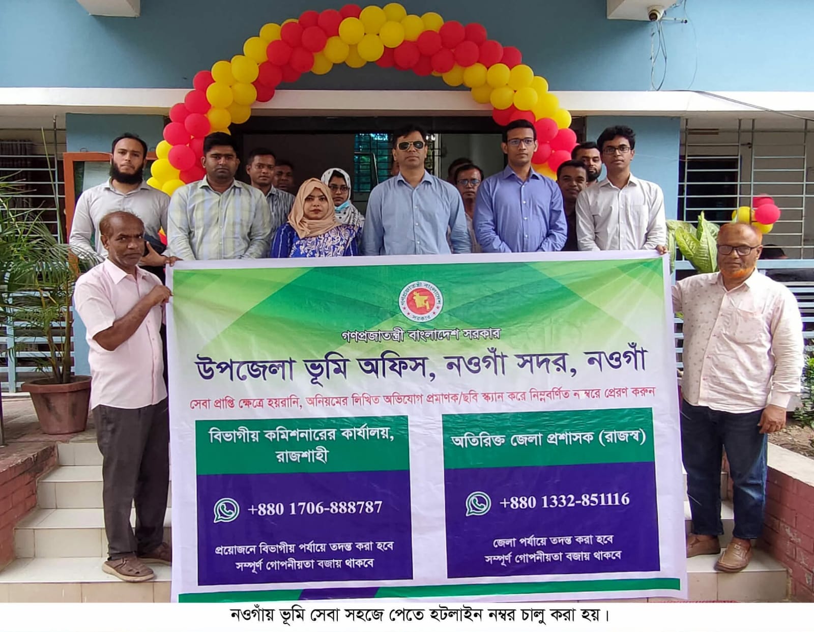 ভূমিসেবা কার্যক্রমকে আরও সহজ ও বেগবান করতে এবং এই সেবায় নিয়োজিত সরকারি কর্মচারীদের জবাবদিহিতা নিশ্চিতকরণে হটলাইন নম্বর সেবা চালু করা হয়েছে। রাজশাহী বিভাগীয় কমিশনারের নির্দেশনায় ও জেলা প্রশাসকের সার্বিক তত্ত্বাবধানে নওগাঁ সদর উপজেলা ভূমি অফিসে এক ব্যতিক্রমধর্মী উদ্যোগ গ্রহণ করা হয়েছে।