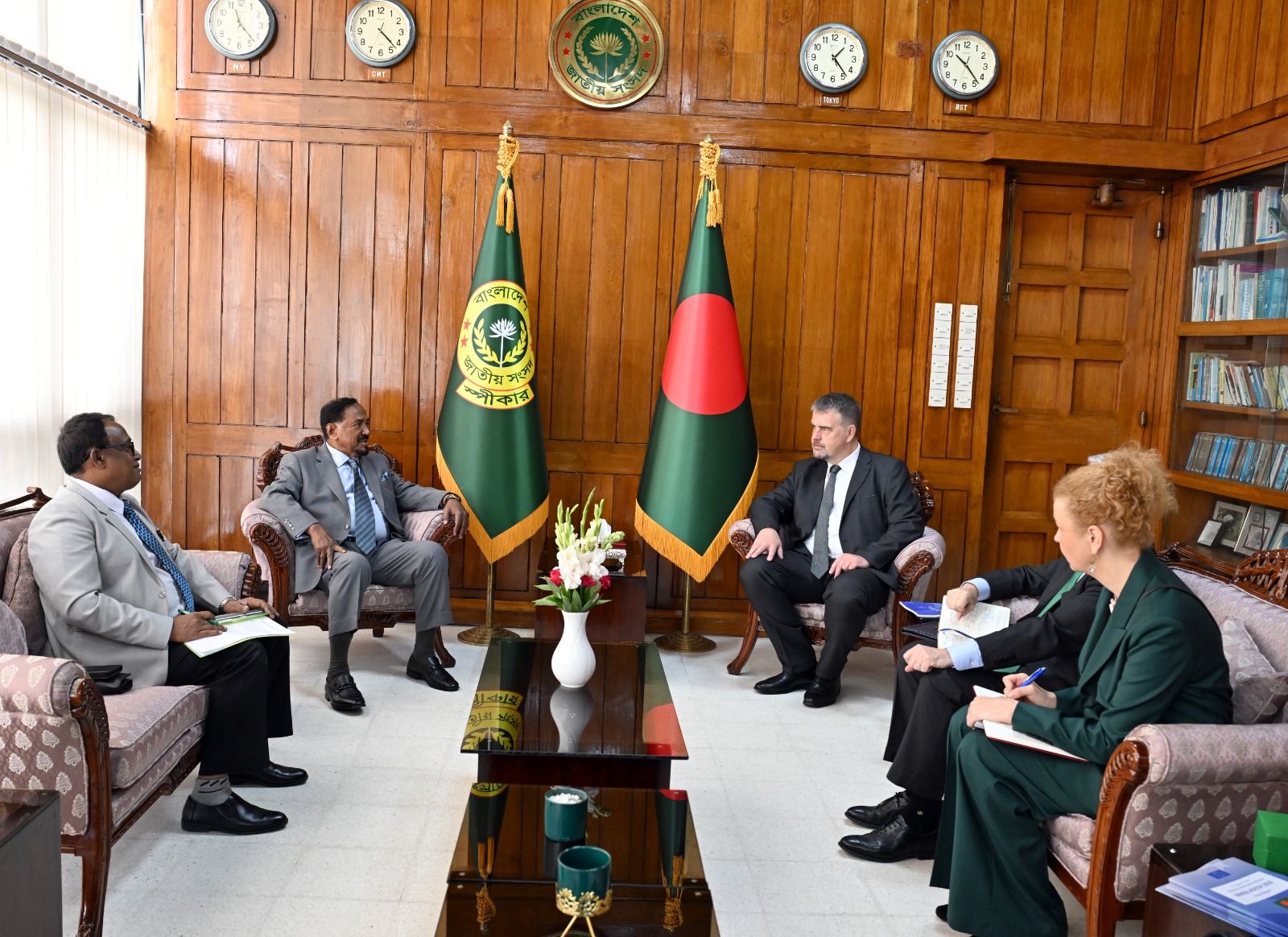 ঢাকা, ২৬ এপ্রিল, ২০২৬ খ্রিঃ বাংলাদেশ জাতীয় সংসদের স্পীকার হাফিজ উদ্দিন আহমদ বীর বিক্রম এমপি'র সাথে আজ তাঁর কার্যালয়ে সৌজন্য সাক্ষাৎ করেন ইউরোপীয় ইউনিয়নের প্রধান নির্বাচন পর্যবেক্ষক ইভার্স আইজাবস।