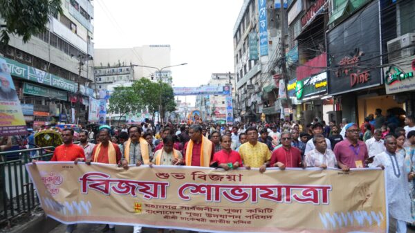 ঢাকা, ০৩ অক্টোবর ২০২৫ শারদীয় দুর্গাপূজার বিজয়া দশমী উপলক্ষে গতকাল বৃহস্পতিবার (২ অক্টোবর ২০২৫) রাজধানী ঢাকাসহ সারা দেশে দেবী দুর্গার বিদায়ের সুরে মুখরিত হয়েছে। ঢাকা মেট্রোপলিটন পুলিশের (ডিএমপি) কঠোর নিরাপত্তা