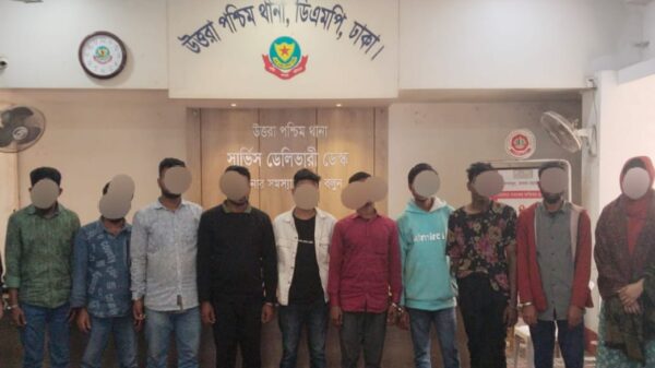 ঢাকা, ২০ ডিসেম্বর ২০২৫ রাজধানীর উত্তরা পশ্চিম থানা এলাকায় দিনব্যাপী বিশেষ অভিযান পরিচালনা করে বিভিন্ন অপরাধে জড়িত মোট ১১ জনকে গ্রেফতার করেছে উত্তরা পশ্চিম থানা পুলিশ। গ্রেফতারকৃতরা হলো- ১। মো.